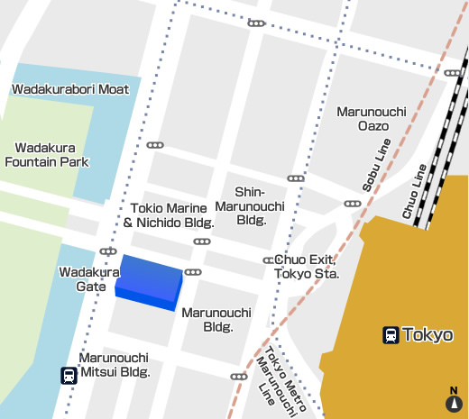| Access | 4 minutes’ walk from JR Tokyo Station, Marunouchi South Exit 2 minutes’ walk from Nijubashimae (Marunouchi) Station, Tokyo Metro Chiyoda Line 3 minutes’ walk from Otemachi Station, Tokyo Metro Mita Line 4 minutes’ walk from Tokyo Station, Tokyo Metro Marunouchi Line |