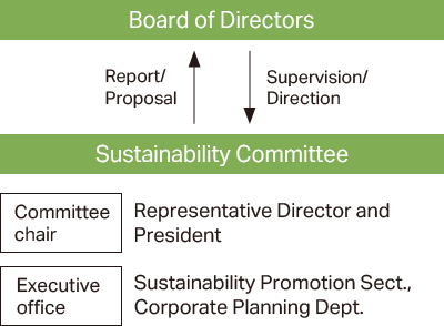 Our Sustainability Committee—which is chaired by the President and comprises internal Directors and Corporate Executives as members—formulates policies, targets, and action plans for combating climate change and realizing other aspects of sustainability for the Group; manages and evaluates our progress toward the targets; discusses individual measures in depth; and reports and advises the Board of Directors on a regular basis. The Sustainability Committee has two regular meetings each year (in May and November) and holds extraordinary meetings as needed.
