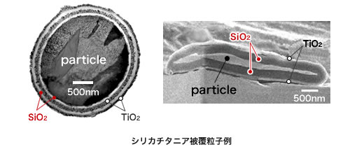 溶液反応を利用して、粒子表面にナノ薄膜をコートする技術です。精密なナノ薄膜がコートされます。