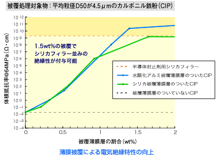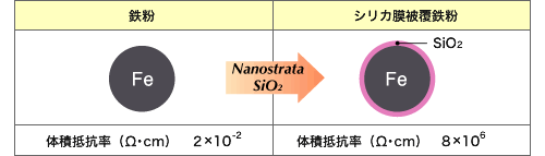 粉体粒子1粒毎にきれいに被覆することができるナノストラータは、粉体粒子に優れた電気絶縁性を付与します。